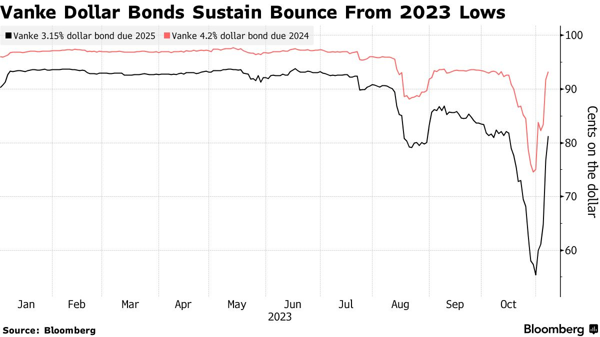 Immediately, Vanke's bond prices rose again (though still lower than before).