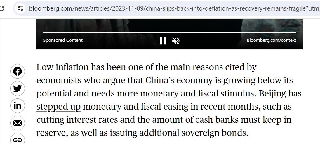 Bloomberg believes that low inflation is one of the main reasons why the economy is growing below potential and China needs more monetary and fiscal stimulus measures.