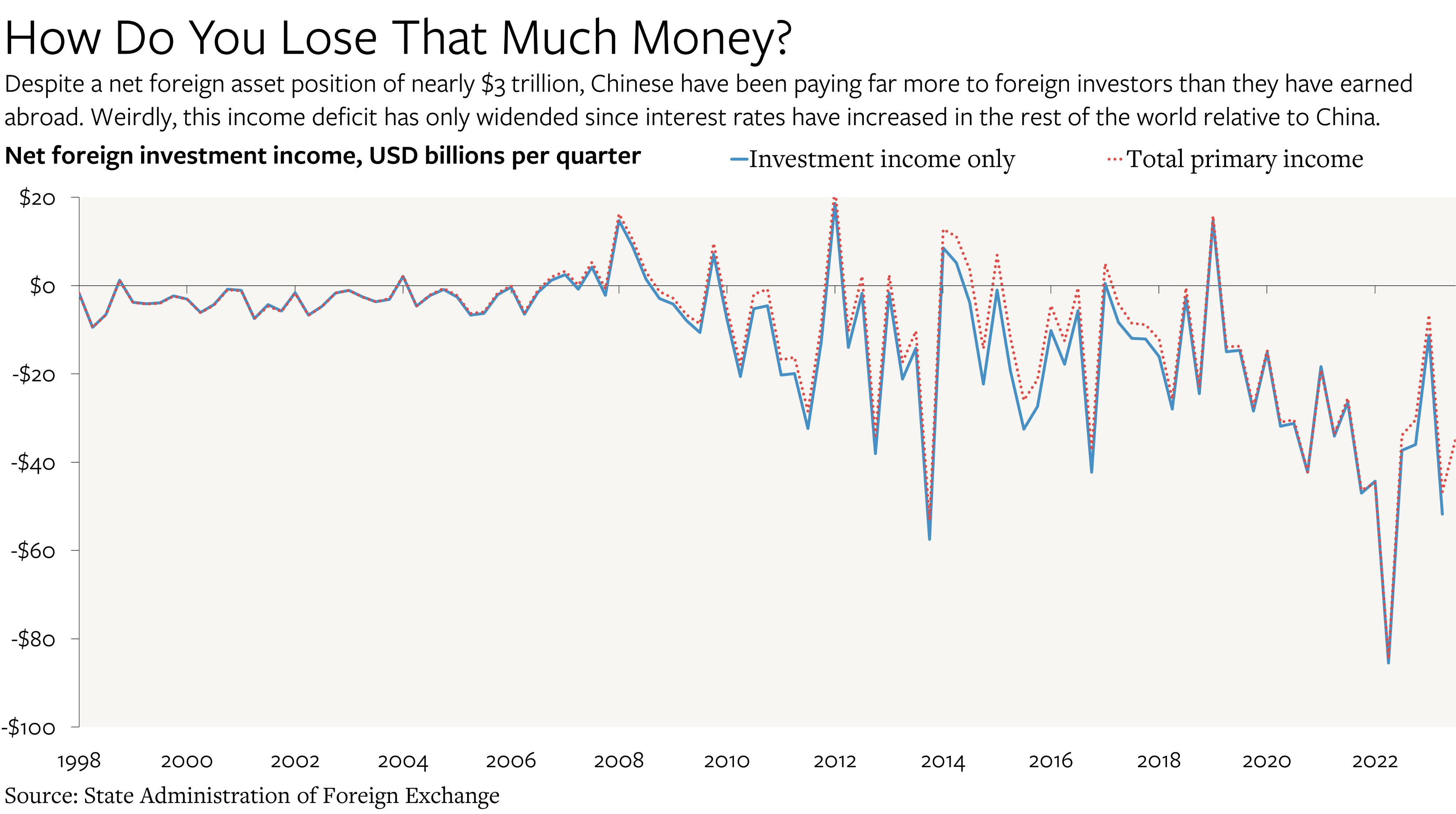 Interestingly, China is paying its foreign investors in their home countries more than it earns from investing abroad.