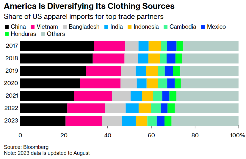 The relocation of supply chains from China to other developing countries is progressing quite slowly.