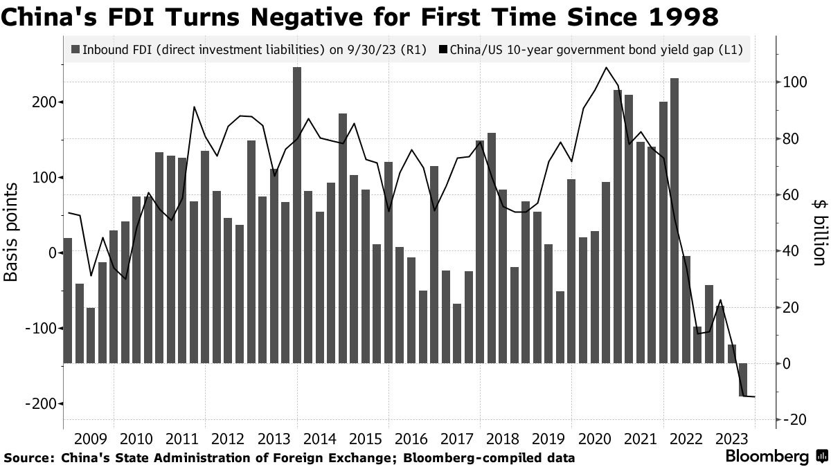 Net FDI outflow from the billion-population market reached -USD 11.8 billion in Q3/2023 (the first net outflow since this figure was officially recorded in 1998).