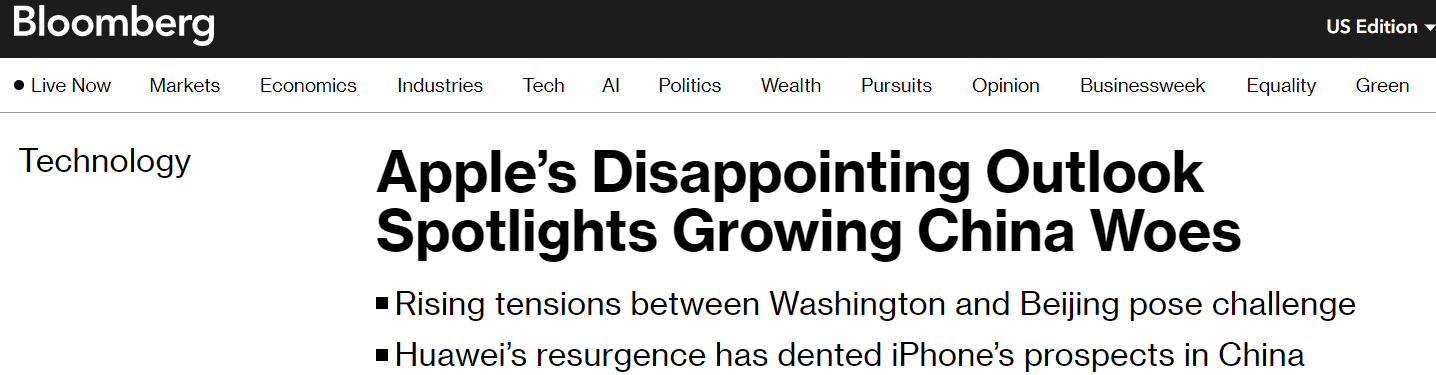 In addition, the decline in demand in China will have a significant impact on US and European businesses operating there (Apple is a typical example).