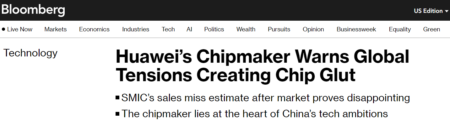 Revenue of Semiconductor Manufacturing International Corporation (SMIC) dropped -15%, especially net income dropped to -80%.