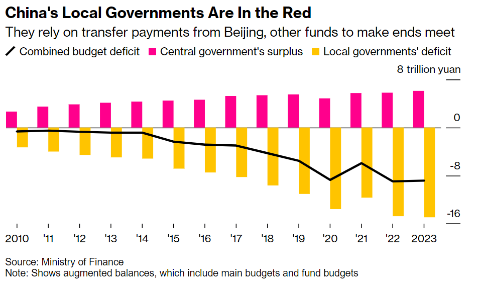 However, the central government's fiscal surplus may not be sufficient to cover local governments' deficits!