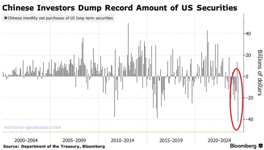 China has sold off 42.6 billion USD US stocks and bonds in May/2024 — record monthly sell-off in history.