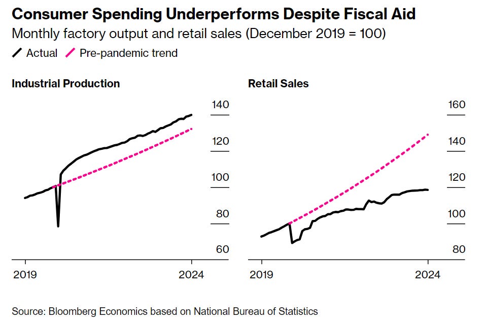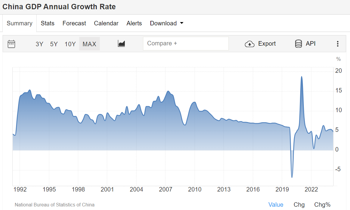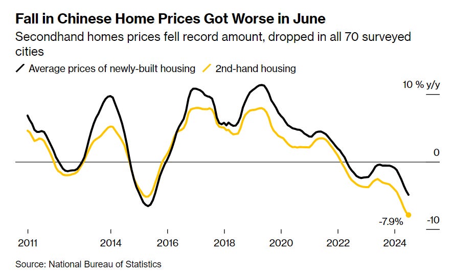China's Q2/2024 GDP only grew +4.7% (annualized) - lower than the 5% target.