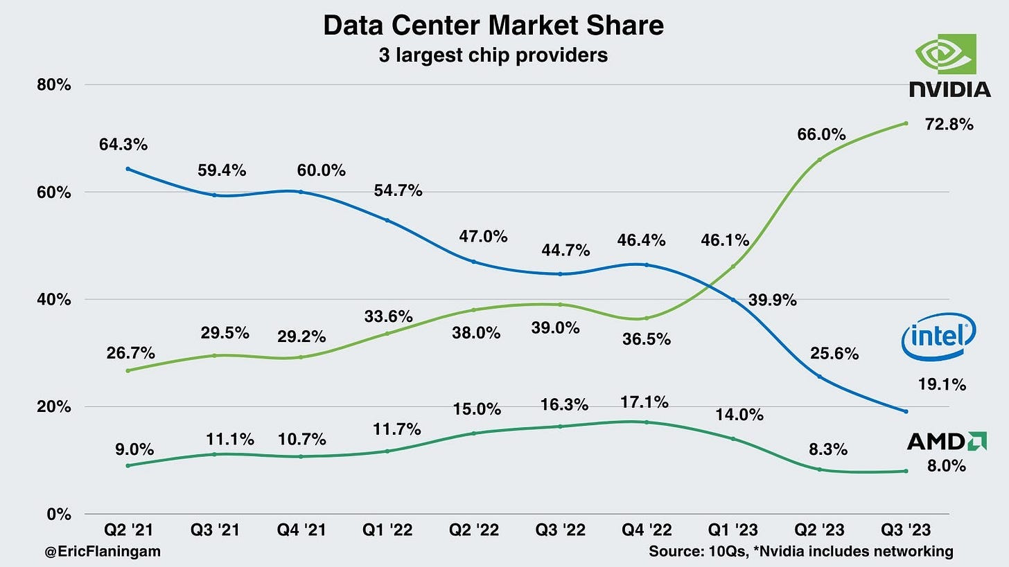Two years later, Nvidia surged to over 66%, Intel dropped to 25%.
