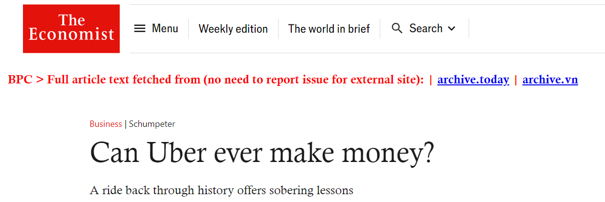 In a 2019 article, the Economist predicted that Uber would never be profitable. The article "Can Uber Ever Be Profitable?" outlined the main challenges: