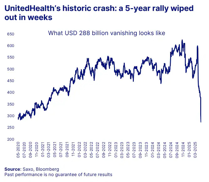 While many investors focus on tariffs and trade policy volatility in Washington, one of the largest healthcare stocks is experiencing unrelated volatility: UnitedHealth down more than 50% from peak.