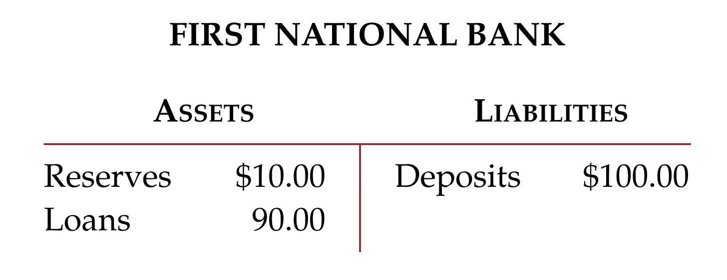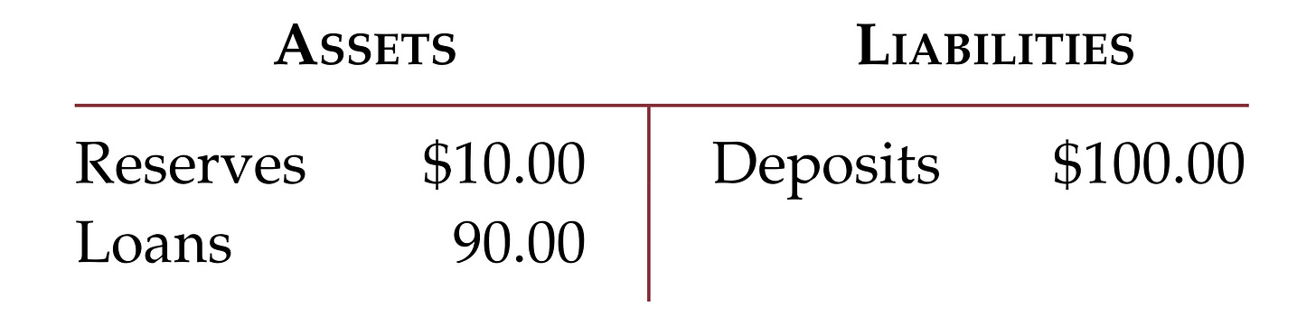 → Assets: $10 reserves + $90 loans.