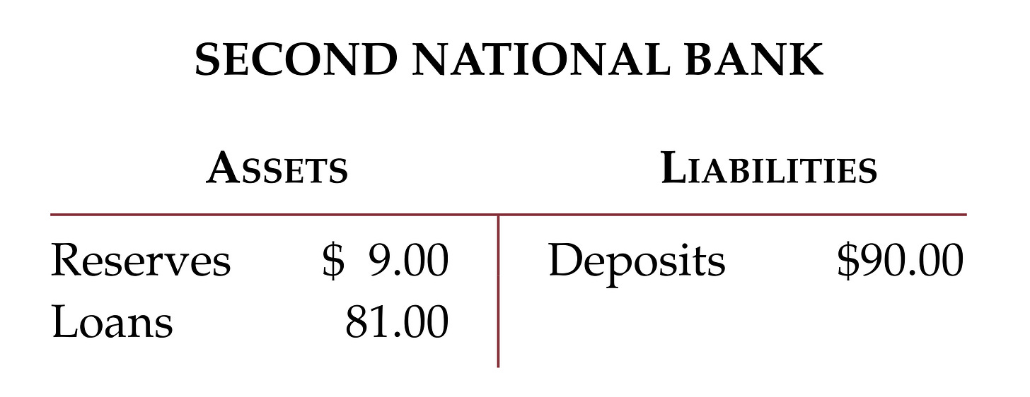 → Second National Bank creates an additional $81 in the money supply.