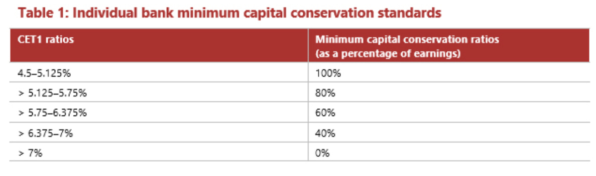 According to Basel III: banks should have a countercyclical capital buffer (Countercyclical capital buffer - CCyB) depending on the risk level of the CET1 asset group (including stocks and risky financial assets) they hold.