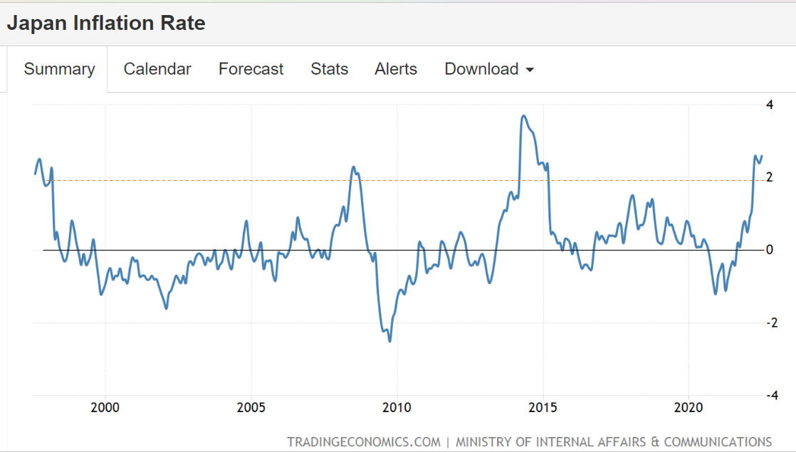 Supply chain shock caused by Covid leading to global inflation (making Japan's inflation rise again).
