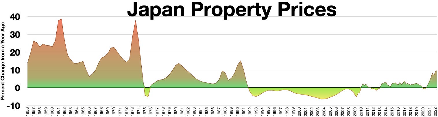 Japan witnessed 2 financial asset bubble bursts (stocks and large real estate): 1974 - 1975 (the origin of the lost decade) and 1991-1992.