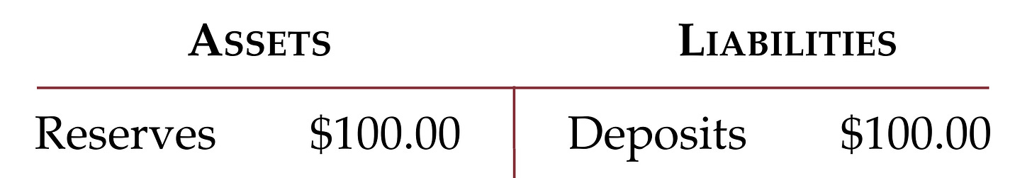 Bank's Assets (Assets): are the bank's reserves ($100).