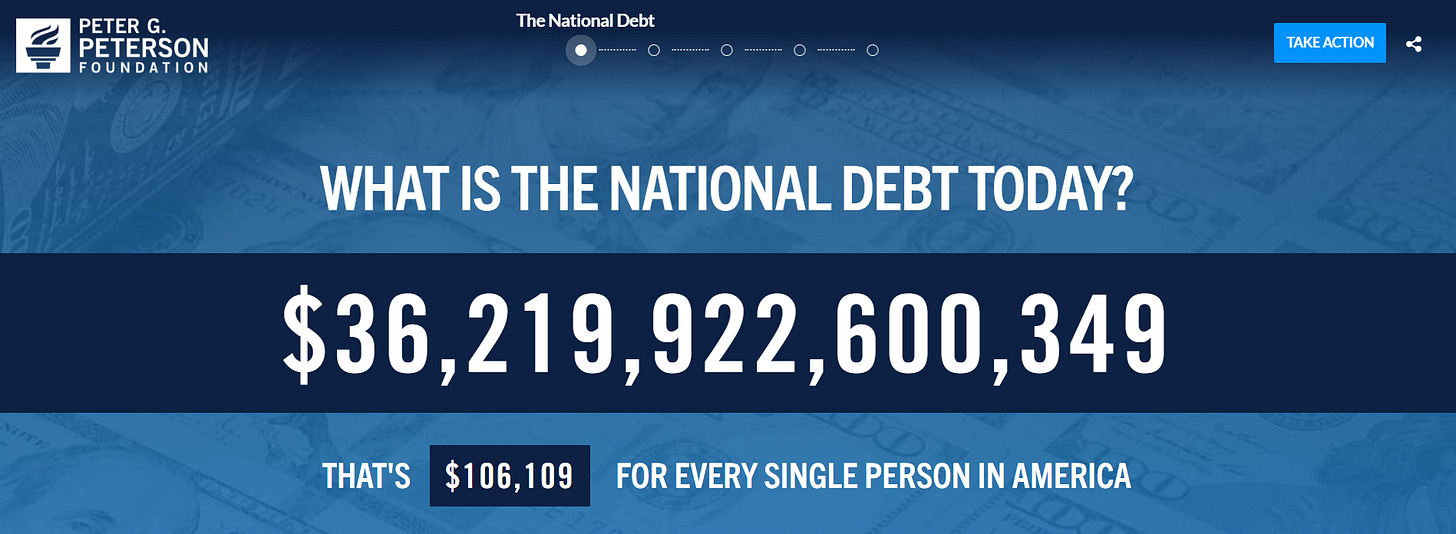 As of now, US public debt has exceeded the 36,200 billion USD mark equivalent to 106,109 USD per citizen.