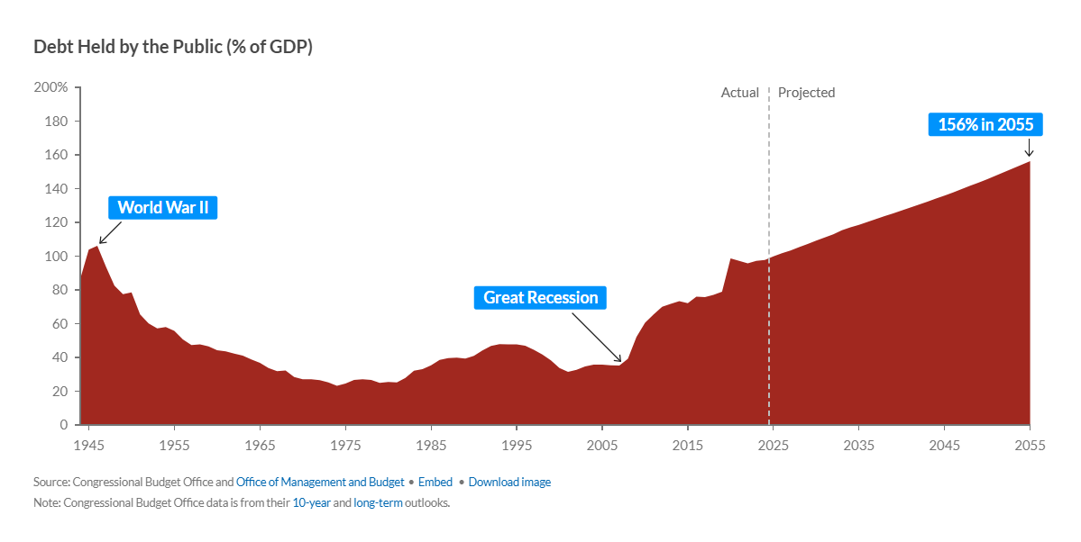 Looking at the overall economy, public debt currently accounts for ~120% GDP and is projected to exceed 150% by 2055 if no significant containment measures are taken.