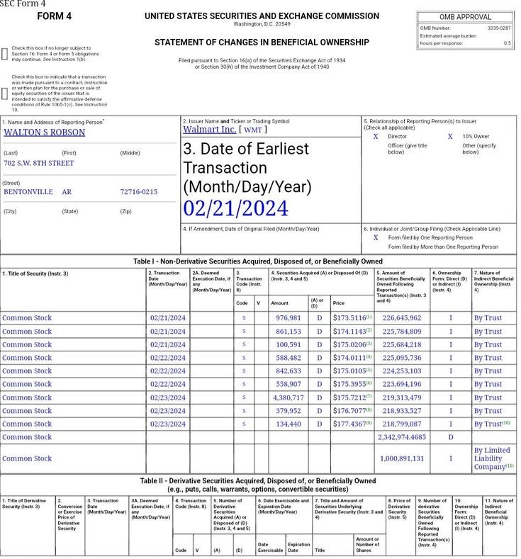 The Walton family also just sold a total of USD 4.5 billion in Walmart shares.