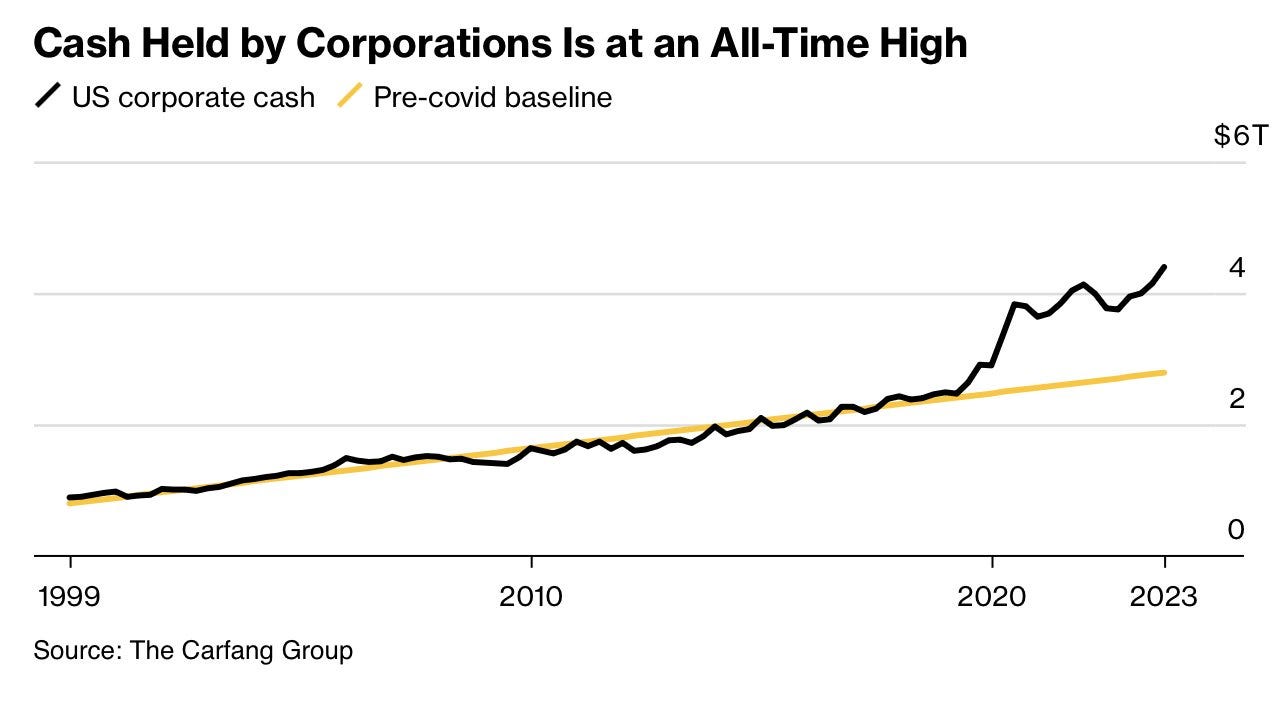 This record cash balance has far exceeded the pre-Covid cash accumulation rate.