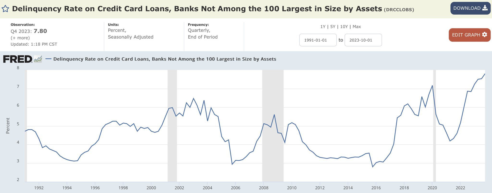 2 - Regional banks' credit card delinquency rate reached an all-time high in Q4/2023: