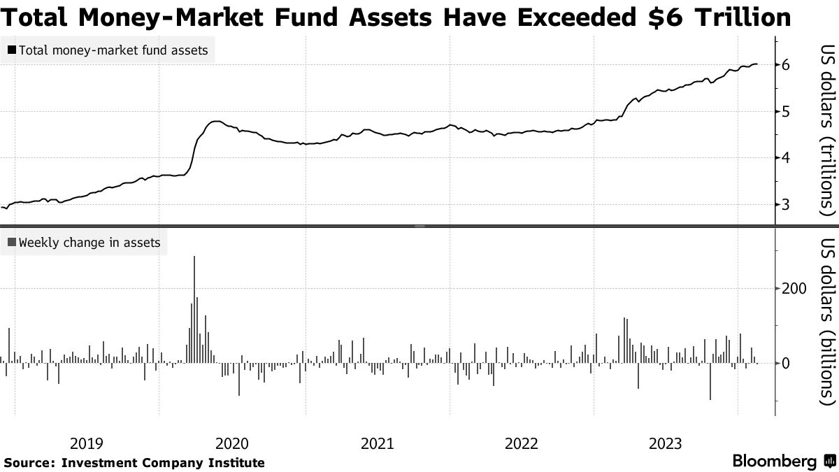 In addition, a large amount of money is also flowing into Money Market Funds (MMF - investing in bonds with maturity under 1 year) - another form of cash: