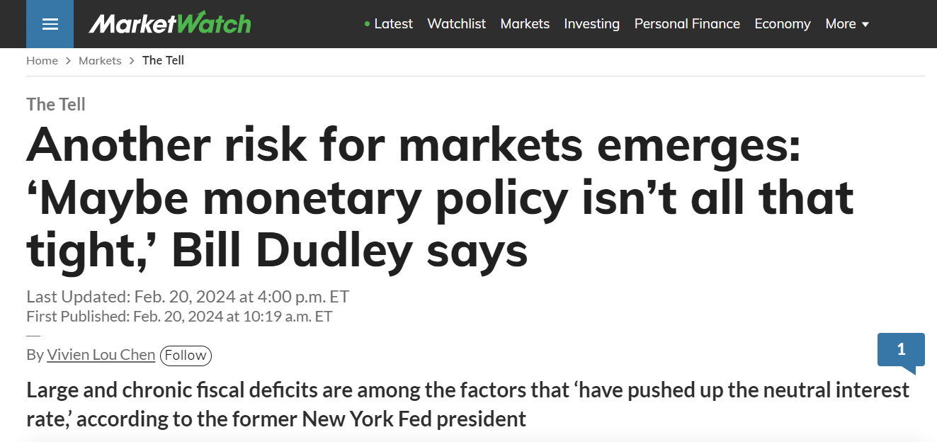 Former New York Fed President Dudley admitted last week that fiscal policies and subsidies have pushed the necessary neutral rate higher…