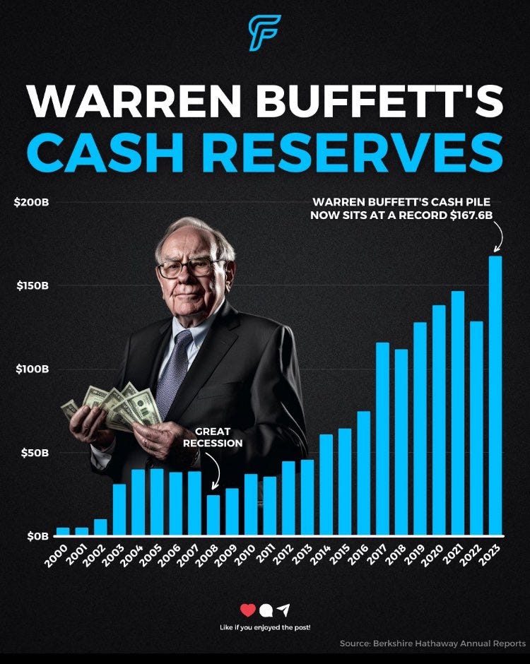 Warren Buffett's Berkshire Hathaway just reported a record cash balance of up to USD 167.6 billion in Q4/2023.