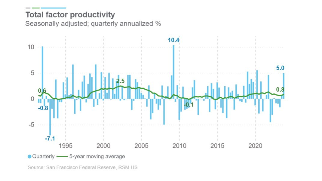 Aggregate productivity index (Total Factor Productivity - TFP ) shows US currently returning to the labor productivity renaissance era: