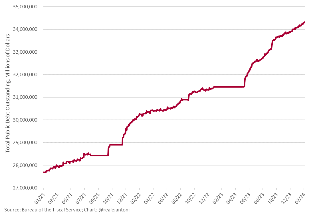 Even though stocks are on a growth trajectory, US public debt (USD 34,330 trillion) is still 2.8x the market value of the Mag 7 group: